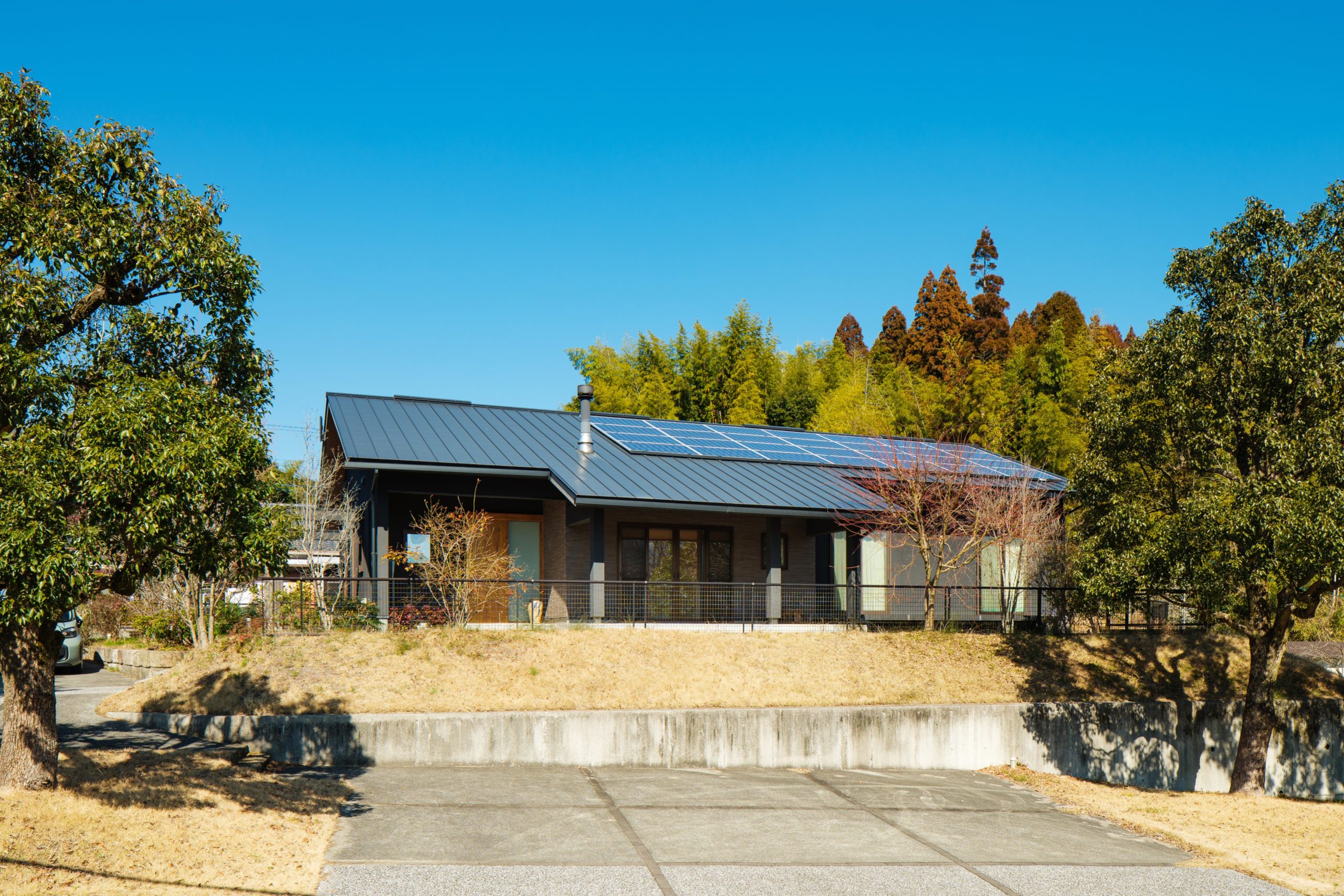 平屋は建物の重心が低いため、地震の揺れや台風の風に強く、壁面積が小さいことにより自然災害による被害を受けにくいという特長があります。