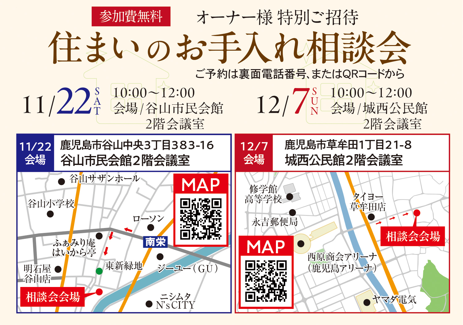 住まいのお手入れ相談会 in 鹿児島市南部&北部のご案内