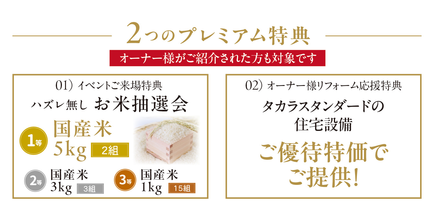 ※ご来場特典は一家族1つまで。 それぞれオーナー様がご紹介された方も対象となります。