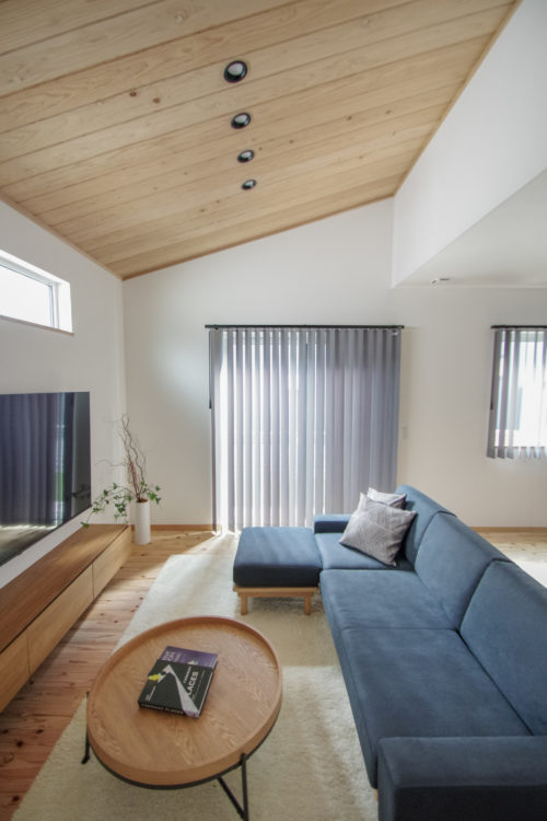 室内は、丸和建設が大切にしている杉の無垢の床材や空気を綺麗にする漆喰をふんだんに使用した、木の香りが落ち着く空間に。お施主様のライフスタイルを踏まえ、日々の家事など生活しやすい動線設計をしています。また、耐震性や断熱性・気密性といった性能面においても数字に裏打ちされた高い性能も実現しています。