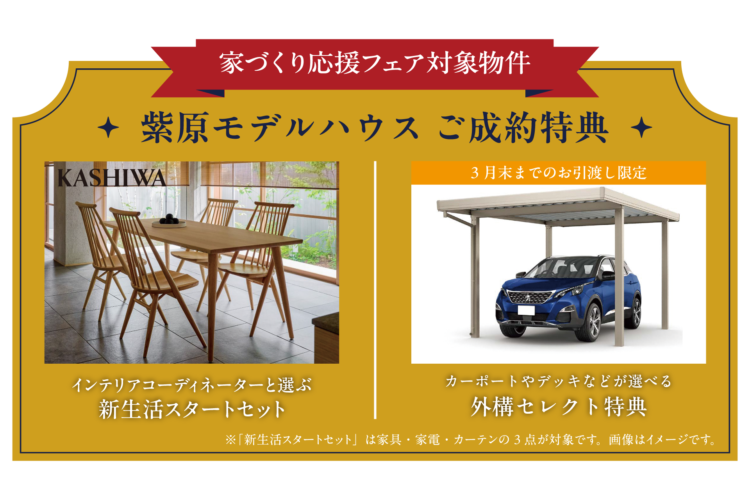 紫原モデルハウスをご成約いただいた方に『コーディネーターと選ぶ 新生活スタートセット』をプレゼント!