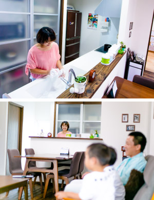→(奥様)そうですね。ここもカウンタ―キッチンになっているので子どもたちの様子を見ながら料理ができるので、安心して料理を作ったり子どもに声かけをできるようになりました。