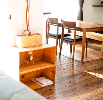 →(奥様)きれいを維持したいから掃除もするし。この床材って珍しくて今まで掃除機で掃除をしてたんですけど、最近気づいたのが箒が一番掃除しやすいかなと思って。この目にゴミが詰まったりするのも最近はもう掃除機を使わず箒で掃除をしたり、あと雑巾がけをしたり。