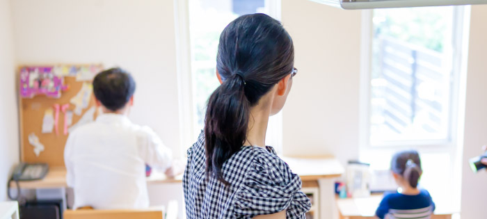 →(旦那様)いろんな方が入ってこられるというのもあって、プライベートな空間っていう意味ではもう完全に別空間になっているのでそのへんはかなり守られていますね。玄関の方も手前リビング側をプライベート専用にして、学習塾に使っている方を共有空間として使えているのでかなり、当初通りうまくいっているような感じです。