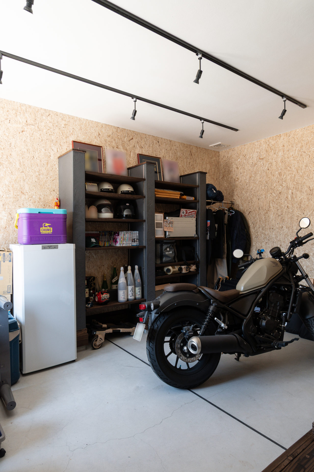 ご夫婦の趣味のバイクも、雨に濡れず、室内から眺められるようにインナーガレージを設置することで、趣味を愉しむ豊かな時間を。