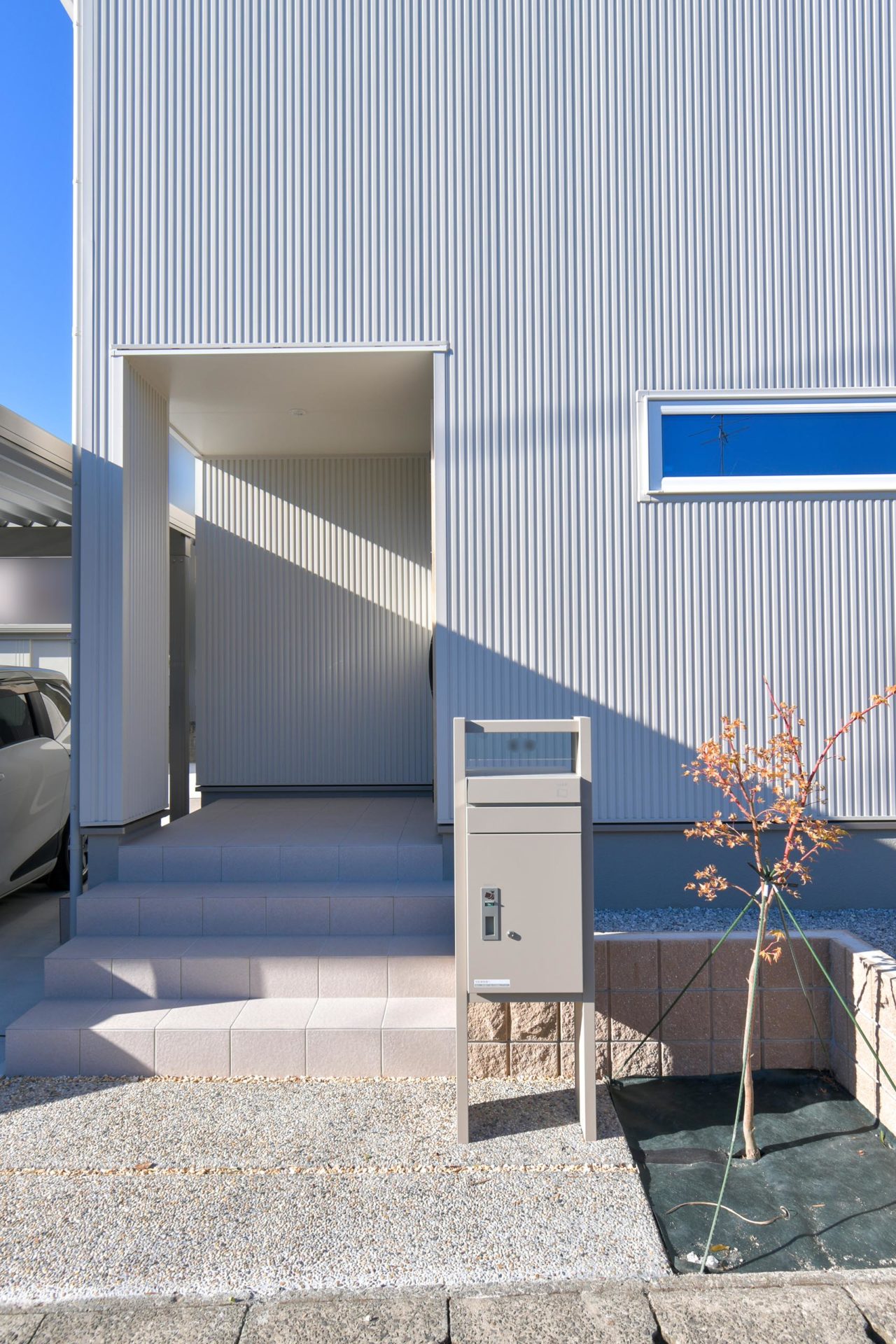 ミストアイボリーのガルバ鋼板が特徴の外観